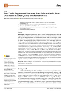 Benke Beáta; John Mike T.; Szentpétery András; Marada Gyula: Item Profile Supplement Summary Score Information in Short Oral Health-Related Quality of Life Instruments.