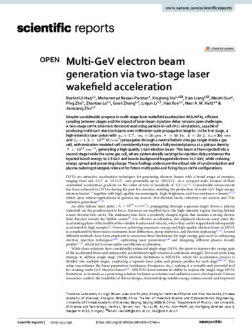 Haq Rashid Ul; Rezaei-Pandari Mohammad; Xie Xinglong; Liang Xiao; Sun Meizhi; Zhu Ping; Lu Zhantao; Zhang Guoli; Li Linjun; Xue Hao; Hafiz Nasr Abdelrahman Mohamed; Zhu Jianqiang: Multi-GeV electron beam generation via two-stage laser wakefield acceleration.