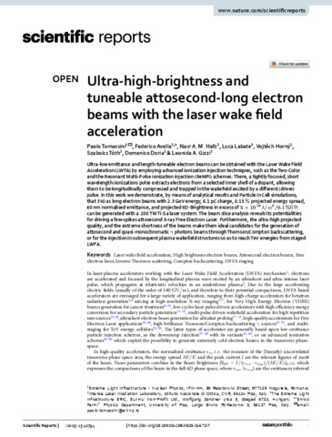 Tomassini Paolo; Avella Federico; Hafiz Nasr Abdelrahman Mohamed; Labate Luca; Horny Vojtech; Tóth Szabolcs; Doria Domenico; Gizzi Leonida A: Ultra-high-brightness and tuneable attosecond-long electron beams with the laser wake field acceleration.
