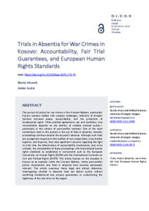 Trials in Absentia for War Crimes in Kosovo: Accountability, Fair Trial Guarantees, and European Human Rights Standards.