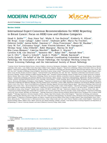 International Expert Consensus Recommendations for HER2 Reporting in Breast Cancer : Focus on HER2-low and Ultralow Categories.