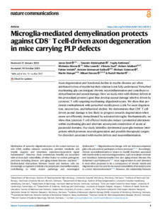 Microglia-mediated demyelination protects against CD8+ T cell-driven axon degeneration in mice carrying PLP defects.