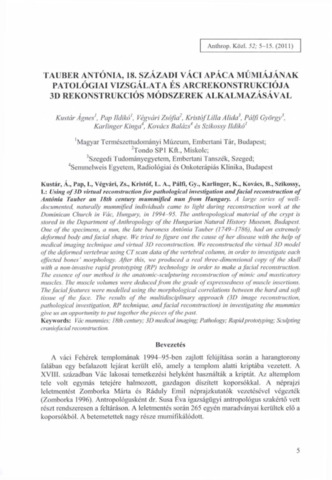 Tauber Antónia, 18. századi váci apáca múmiájának patológiai vizsgálata és arcrekonstrukciója 3D rekonstrukciós módszerek alkalmazásával.