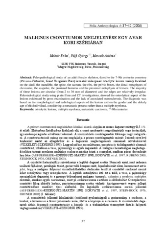 Molnár Erika; Pálfi György; Marcsik Antónia: Malignus csonttumor megjelenése egy avar kori szériában.