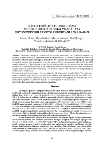 A csont-ízületi tuberkulózis molekuláris biológiai vizsgálata egy középkori temető embertani anyagában.