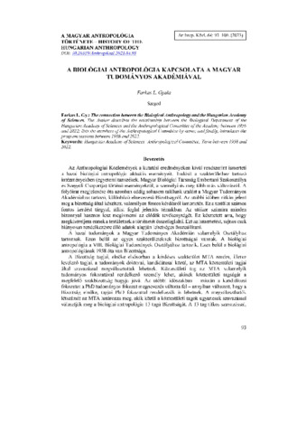 Farkas L. Gyula: A biológiai antropológia kapcsolata a Magyar Tudományos Akadémiával.