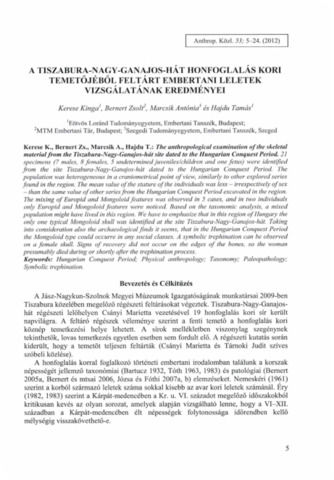 A Tiszabura-Nagy-Ganajos-hát honfoglalás kori temetőjéből feltárt embertani leletek vizsgálatának eredményei [The anthropological examination of the skeletal material from the Tiszabura-Nagy-Ganajos-hát site dated to the Hungarian Conquest Period].