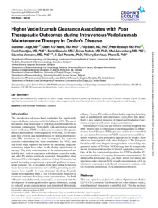 Higher Vedolizumab Clearance Associates with Poor Therapeutic Outcomes during Intravenous Vedolizumab Maintenance Therapy in Crohn's Disease.