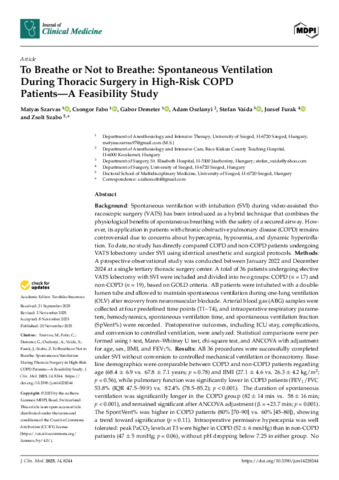 To Breathe or Not to Breathe: Spontaneous Ventilation During Thoracic Surgery in High-Risk COPD Patients—A Feasibility Study.