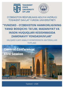 In: “YUNЕSKO – O‘zbekiston hamkorligining yangi bosqichi: ta’lim, madaniyat va inson huquqlari kesishmasida zamonaviy yondashuvlar” mavzusidagi xalqaro ilmiy-amaliy konferensiya materiallari to‘plami. Toshkent Davlat Yuridik Universiteti, Taskent, pp. 28-41. (2025)