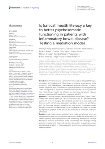 Is (critical) health literacy a key to better psychosomatic functioning in patients with inflammatory bowel disease? Testing a mediation model.