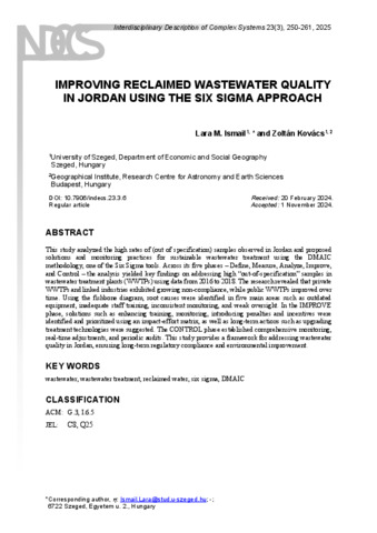 Improving reclaimed wastewater quality in Jordan using the Six Sigma approach.
