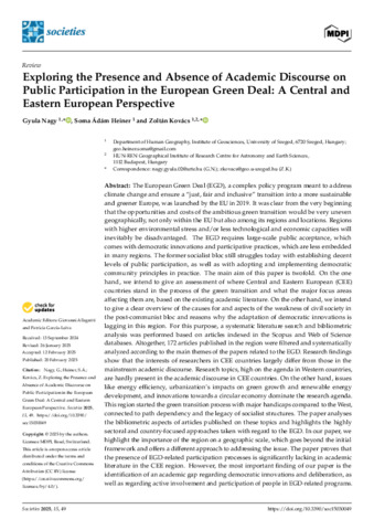 Exploring the presence and absence of academic discourse on public participation in the European Green Deal: a Central and Eastern European perspective.