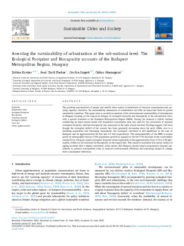 Assessing the sustainability of urbanization at the sub-national level: the Ecological Footprint and Biocapacity accounts of the Budapest Metropolitan Region, Hungary.