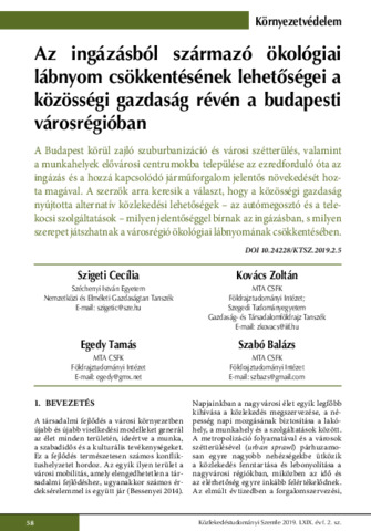Az ingázásból származó ökológiai lábnyom csökkentésének lehetőségei a közösségi gazdaság révén a budapesti városrégióban.