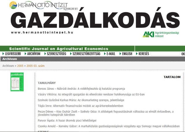 | Folyóirat/kiadvány címe: | GAZDÁLKODÁS | |