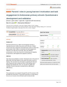 Parents’ roles in young learners’ motivation and task engagement in Indonesian primary schools: Questionnaire development and validation.