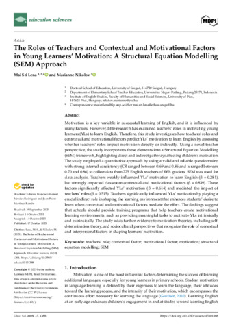 The Roles of Teachers and Contextual and Motivational Factors in Young Learners' Motivation: A Structural Equation Modelling (SEM) Approach.