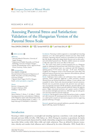 Assessing Parental Stress and Satisfaction: Validation of the Hungarian Version of the Parental Stress Scale.