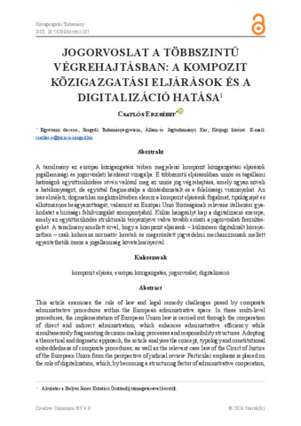 Jogorvoslat a többszintű végrehajtásban: a kompozit közigazgatási eljárások és a digitalizáció hatása.