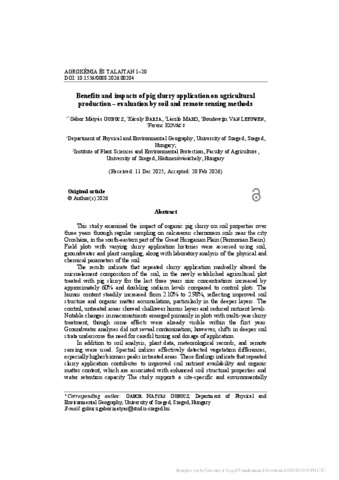 Benefits and impacts of pig slurry application on agricultural production – evaluation by soil and remote sensing methods.