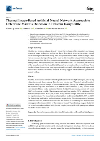 Thermal Image-Based Artificial Neural Network Approach to Determine Mastitis Detection in Holstein Dairy Cattle.