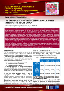THE EXAMINATION OF THE COMPOSITION OF WASTE TAKEN TO THE REFUSE DUMP.
