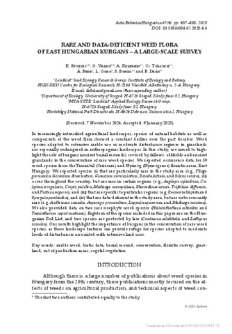 Rare and Data-Deficient Weed Flora of East Hungarian Kurgans - A Large-Scale Survey.